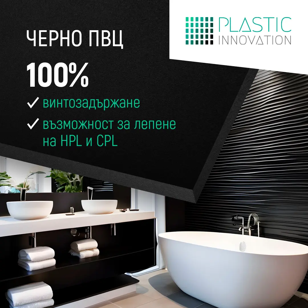 Корпус, стена и плот със залепен HPL върху черното ПВЦ.